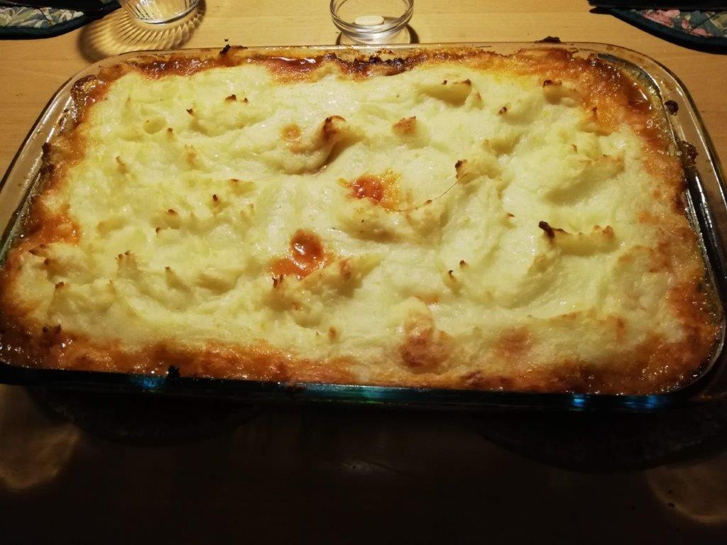 Er leverpostejen ikke brun nok på toppen, gives ekstra varme til sidst. PAS på den ikke bliver sort i skorpen.