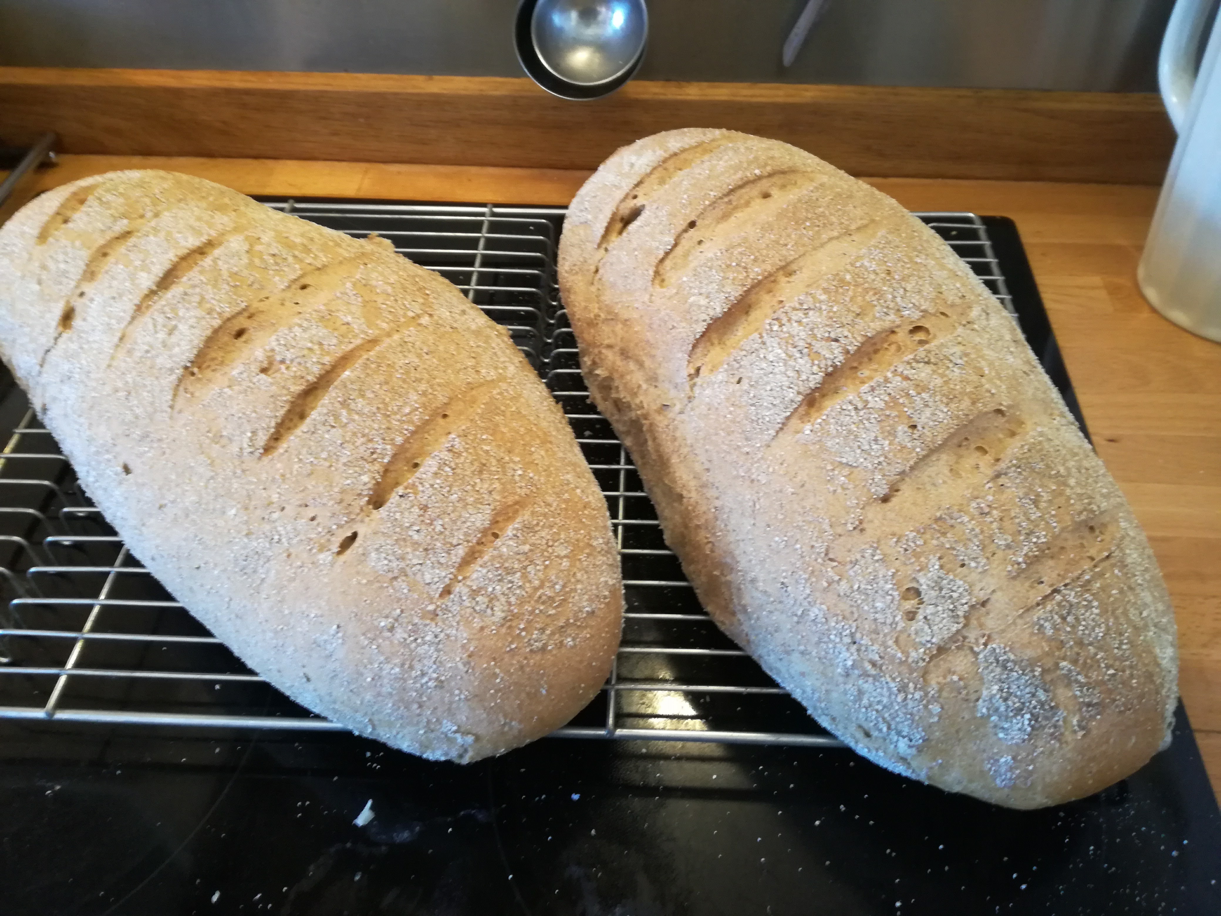 Gær og salt opløses i lunkent vand sammen med hvidtøl. Rugmel, sigtemel, hvedemel og margarine tilsættes. Æltes godt sammen og skal have en liggetid på 1 time. Dejen deles i 2 stykker der slås op til to lange brød. De stryges med vand, rulles i rugmel og sættes på en bageplade med bagepapir og skæres på tværs med en skarp kniv. Sættes til hævning under et fugtigt viskestykke over i ca 45 min. Sættes i forvarmet ovn ved 225 gr alm ovn. Temperaturen sænkes straks til 200 gr. Brødene bages ca 40min.
